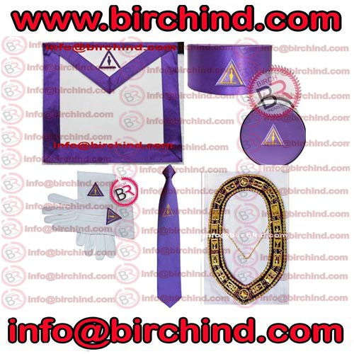 Royal and select master Masonic apron crown case gloves tie and chain collar Set