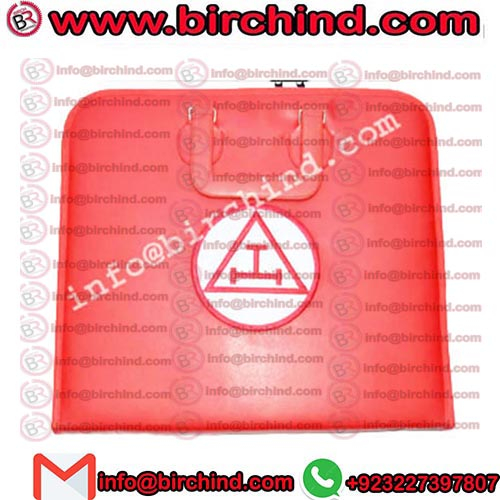 Grand Past high priest apron case Masonic Apron Case 2 side zipper opening Red leather Quality Metal Lock Inside pocket and strap to hold apron, gloves and accessories Solid Hand Strap Size 16" X 18" Size 17" X 19"
