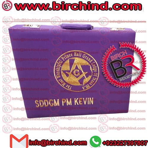 Masonic Apron Hard Case Purple Quality Metal Lock Inside pocket and strap to hold apron, gloves and accessories Solid Hand Strap Size 16" X 18" Size 17" X 19"