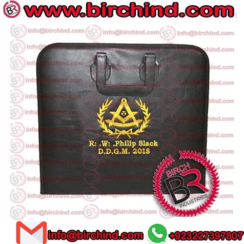 Past Master Masonic Apron Case 2 side zipper opening Black Quality Metal Lock Inside pocket and strap to hold apron, gloves and accessories Solid Hand Strap Size 16" X 18" Size 17" X 19" Sizes Available in al