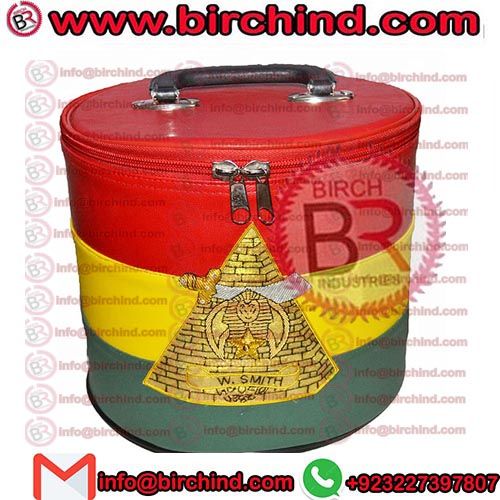 Shriner Fez Case Tri Color Hand Embroidered Shriners Pyramid Custom Temple Name, Masonic Shriners Fez Case