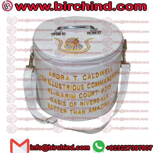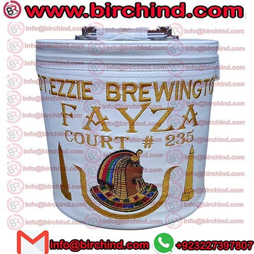 Masonic Daughters of ISIS White Fez Case DOI Hat & Cap Storage Box with Shoulder Strap in Imitation Leather embroidered name with nice golden handle with long shoulder strap-.jpg